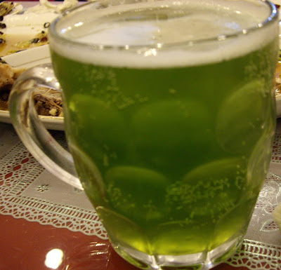綠啤酒,這是用螺旋藻釀造的,喝完會有螺旋力,我喝了一口,感覺很苦,不好喝